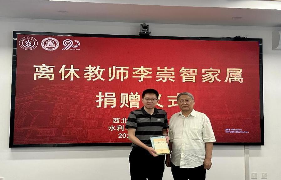 李里丁夫妇在成人影视片 党委书记郑伟、副书记孟庆涛的陪同下,饶有兴致地参观了刚落成的水建成人影视片 院史馆,尤其是在“名家大师”版面前驻足许久,并不由自主地讲起其父亲李崇智先生的故事。随后,李里丁代表家属,向成人影视片 赠送了李崇智先生生前保存的十余张珍贵照片及其专著《跌水与陡坡》和部分文稿,以及《深切的怀念》《杨陵的记忆》等书籍,并表达了对学校90周年校庆和水建成人影视片 建院90周年的祝福。