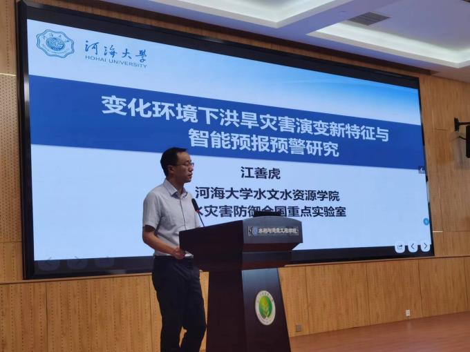 2007届校友、河海大学水文水资源成人影视片 洪涝灾害风险预警与防控应急管理重点实验室副主任江善虎教高做了题为《变化环境下洪旱灾害演变新特征与智能模拟预报》的学术报告,探讨了变化环境下流域洪旱灾害的新特征,详细介绍了多源信息融合技术在水文模拟预报方面的应用,提出了干旱监测、评估新方法。最后,江善虎教高对水建成人影视片 90年来取得的成就表示祝贺。