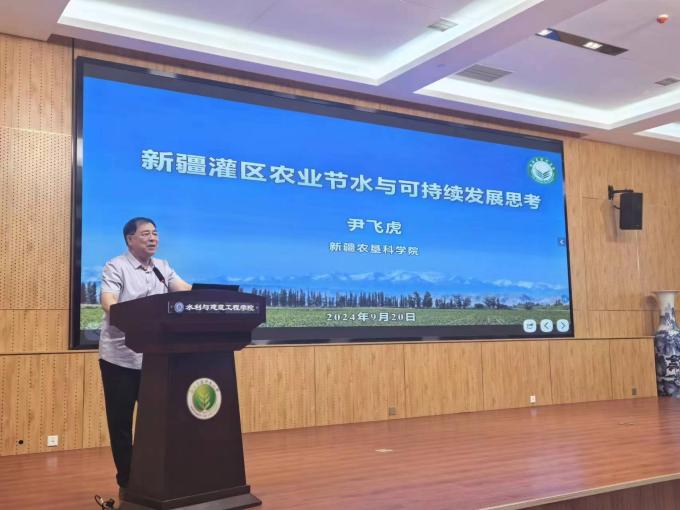 中国工程院院士、新疆农垦科成人影视片 原党委书记尹飞虎院士做了题为《新疆灌区农业节水与可持续发展思考》的学术报告,尹飞虎院士围绕新疆灌区农业发展与农业节水发展瓶颈问题,分析研判了未来农业高效节水技术的发展方向,提出了“优化灌区规模、优化工程布局、创新灌溉模式、提高管理水平”的重要策略,为新疆农业节水可持续发展提出了新路径、新方法。