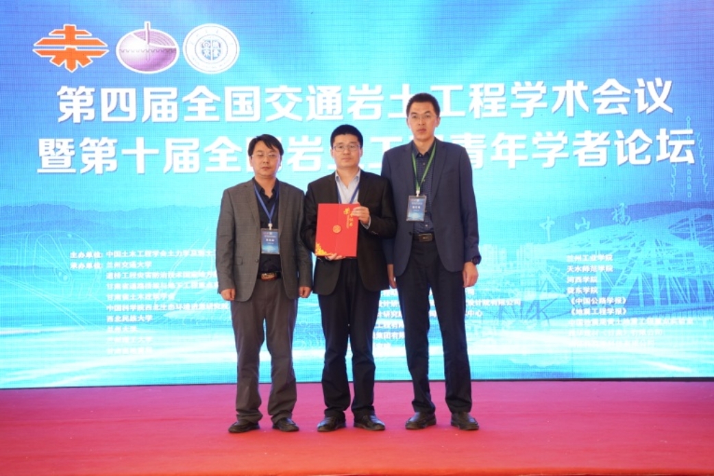 我院侯天顺副教授带领研究生参加本次会议并主持了地基处理新技术分会场学术报告。侯天顺副教授作了题为“动荷载下发泡颗粒混合轻量土变形特性及骨干曲线本构模型研究”学术报告,系统阐述了EPS颗粒混合轻量土在动荷载条件下的动剪应力-剪应变关系特性,基于结构性参数建立了轻量土的最大动剪切模量公式、最大阻尼比公式以及骨干曲线的修正模型,揭示了轻量土的动变形机理,为轻量土的实际工程应用提供理论依据。其研究成果得到了与会专家学者的重视和好评。