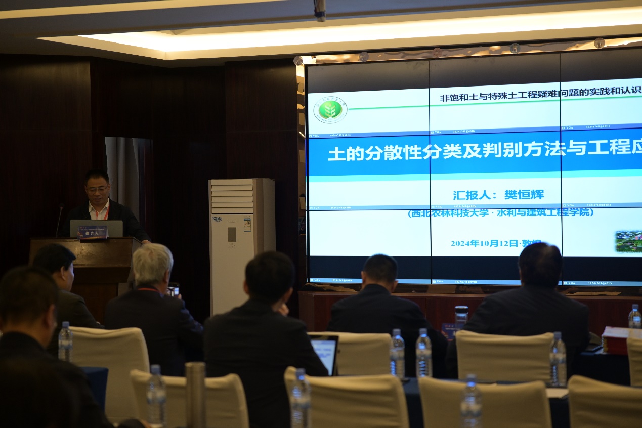 研讨会期间副院长樊恒辉研究员代表我校分别在专委会工作会议、大会闭幕式上就我校明年承办的“第四届全国非饱和土与特殊土力学及工程学术研讨会”的筹备情况进行了汇报,并正式发布会议一号通知,确定会议举办时间为2025年7月18日-7月20日。此外,樊恒辉研究员在学术交流环节做了题为“土的分散性分类与判别方法及工程应用”的特邀报告。