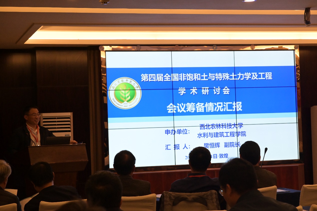 樊恒辉汇报“第四届全国非饱和土与特殊土力学及工程学术研讨会”筹备情况