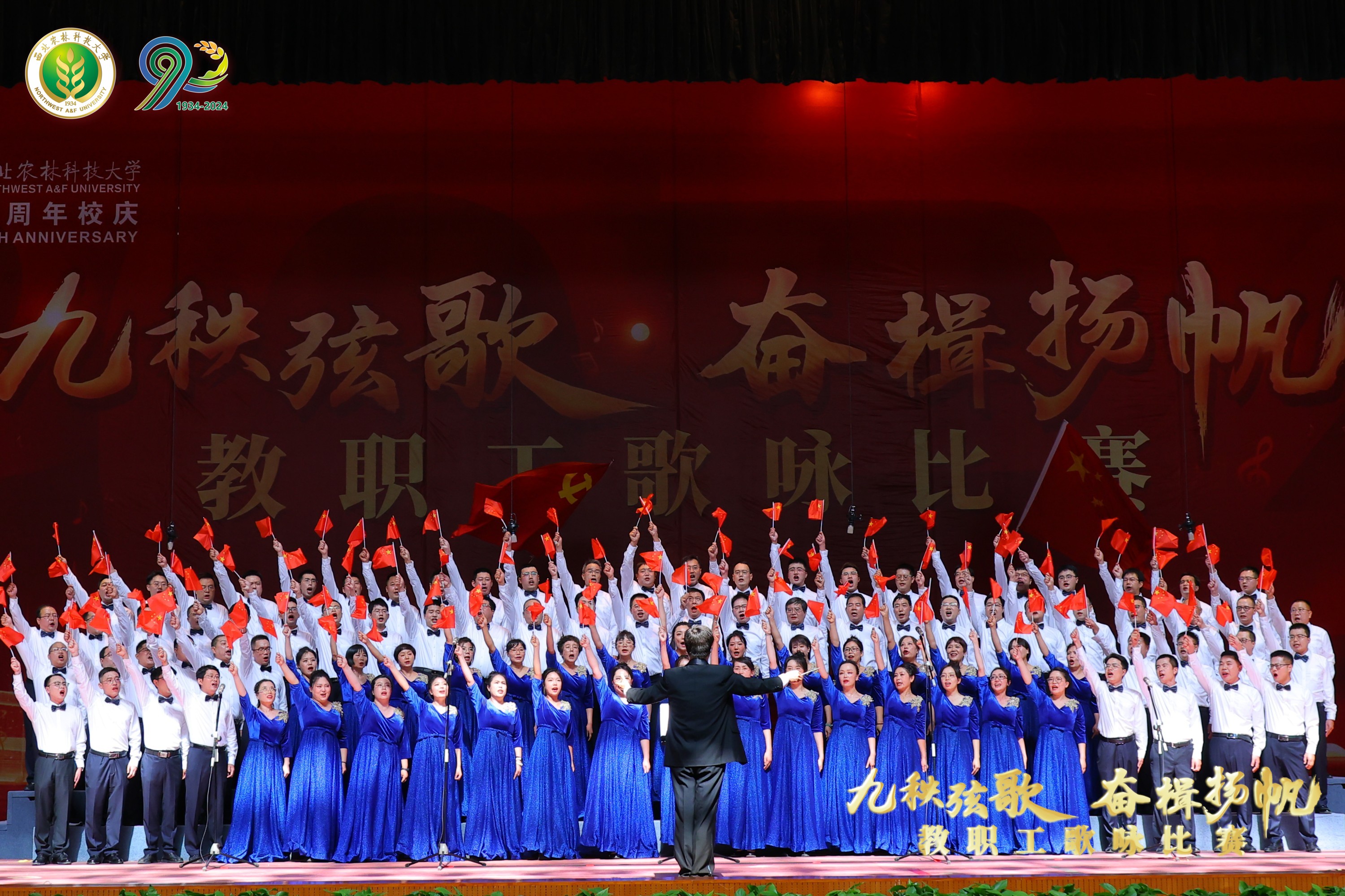 为展现全校教职工蓬勃向上的精神风貌,进一步激发全校教职工爱党爱国爱校热情,提振干事创业的精气神,传承和弘扬“西农”精神,凝心聚力推动学校各项工作高质量发展,6月28、29日,学校于南校区体育馆举办“九秩弦歌·奋楫扬帆”教职工歌咏比赛。