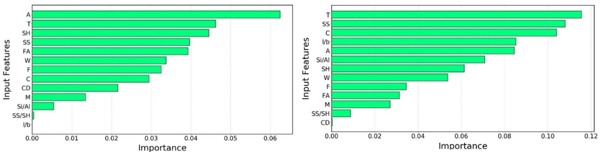最后,该研究通过重要性排序获得机器学习模型对13个变量的感知度,其中随机森林模型的结果如图2所示,探讨其与常规混凝土的差异,并深入分析了内在机理。